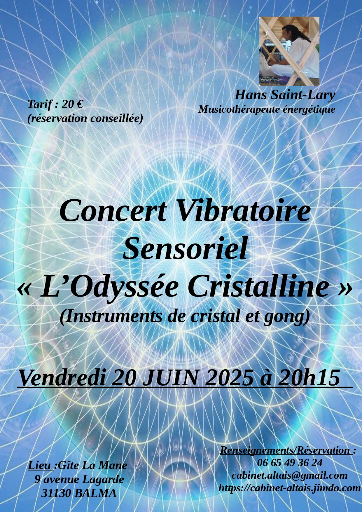 Venez profitez des sons, des fréquences de mes nombreux instruments bol tibétains et de cristal, gongs, tambours, et plein d’autres. Il y aura aussi l‘énergie de guérison des élixirs sonores pour vous accompagner dans votre mouvement.