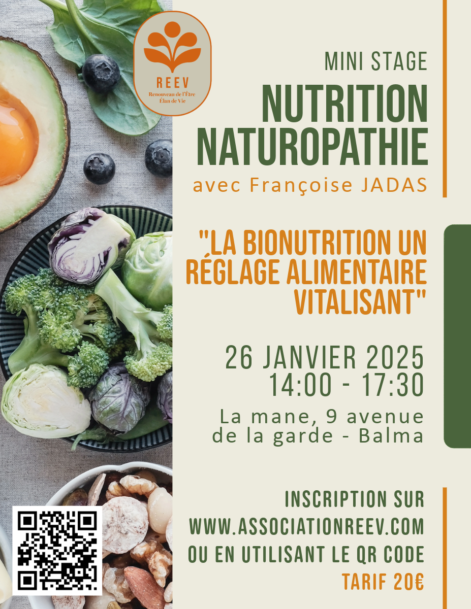Si besoin un lien vers un site de réservation : https://www.helloasso.com/associations/reev-renouveau-de-l-etre-elan-de-vie/evenements/mini-stage-nutrition-naturopathie