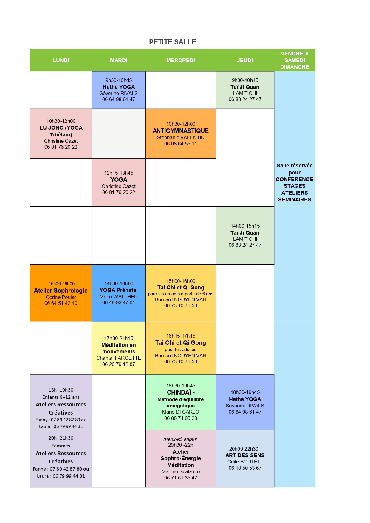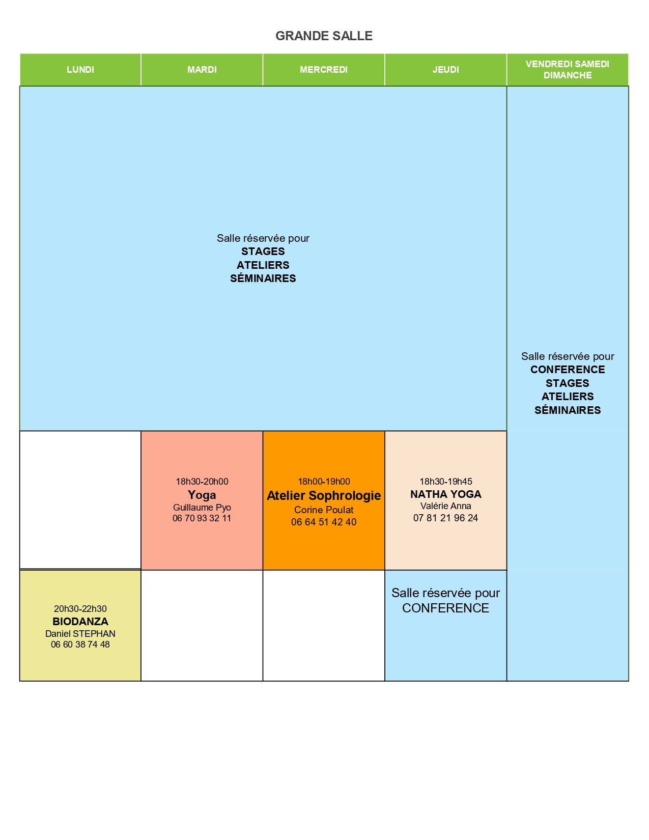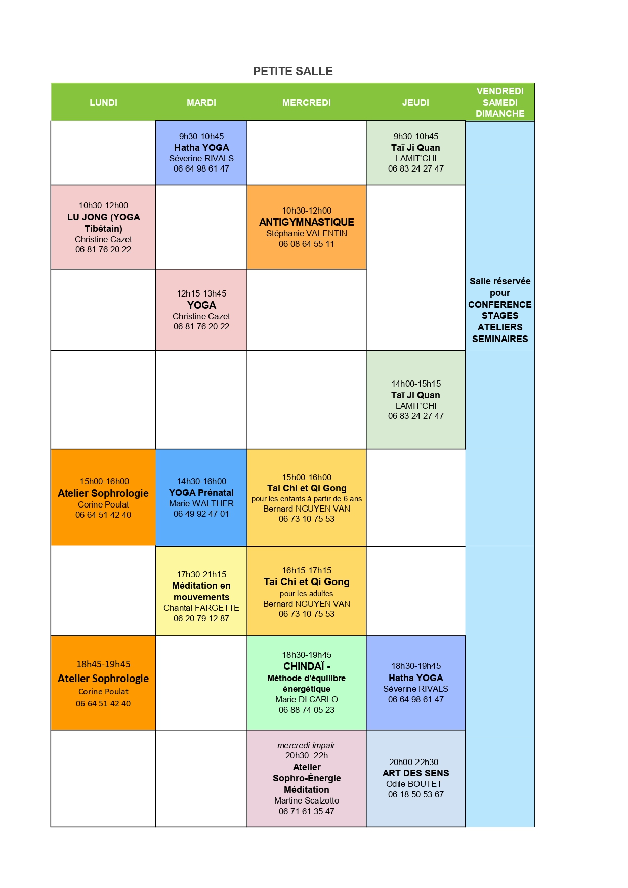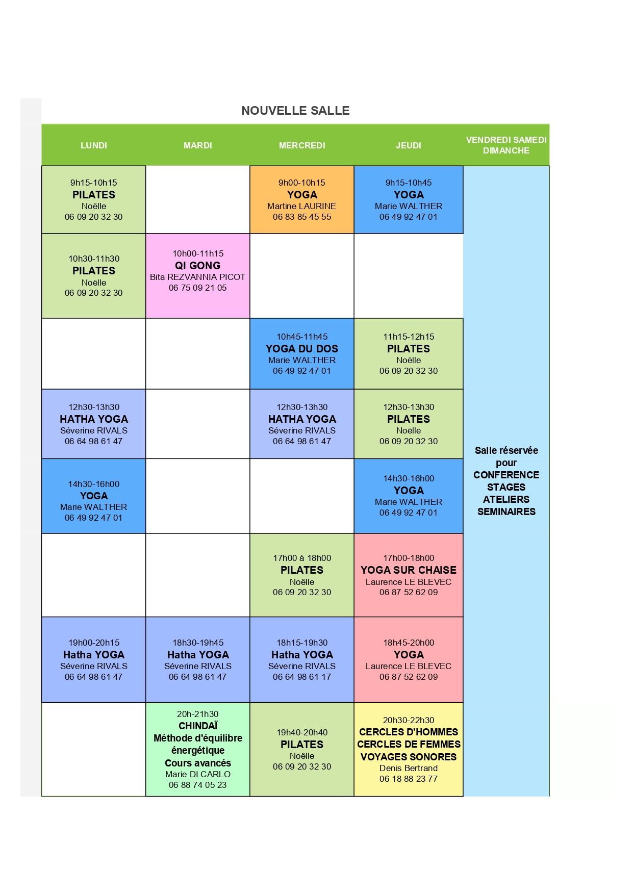 Les cours hebdomadaires se déroulent dans 3 salles différentes du lundi au vendredi.
